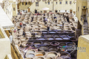 Next stop was the Sid Moussa Tannery. Not the biggest tannery in Fez, but a interesting visit. Of course our guide knew someone at the tannery and he turned us over to him for the tour. To start off, everything you read about the smell is true. It was awful! They give you a mint spring as you walk in so you can hold it up to your nose for the tour, while you are outside. Even as you start to get near the tannery you can start to smell the hides. The process for making these leather products has not changed in hundreds of years.