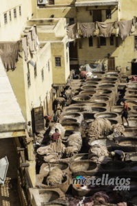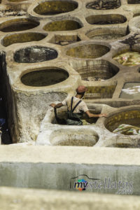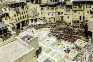 Next stop was the Sid Moussa Tannery. Not the biggest tannery in Fez, but a interesting visit. Of course our guide knew someone at the tannery and he turned us over to him for the tour. To start off, everything you read about the smell is true. It was awful! They give you a mint spring as you walk in so you can hold it up to your nose for the tour, while you are outside. Even as you start to get near the tannery you can start to smell the hides. The process for making these leather products has not changed in hundreds of years.