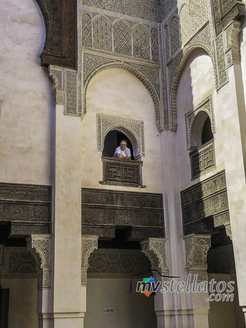 We walked down this incredibly narrow alleyway that had these really cool lights hanging and that led to to the Madrassa Archaratine. This was not on my list of things to see but as we had some time and it was only 20 Dinar (about $2 bucks) to get in, we had to go see it. What really made this Madrassa great was that you could go up to the second and third floors where the student would actually sleep.